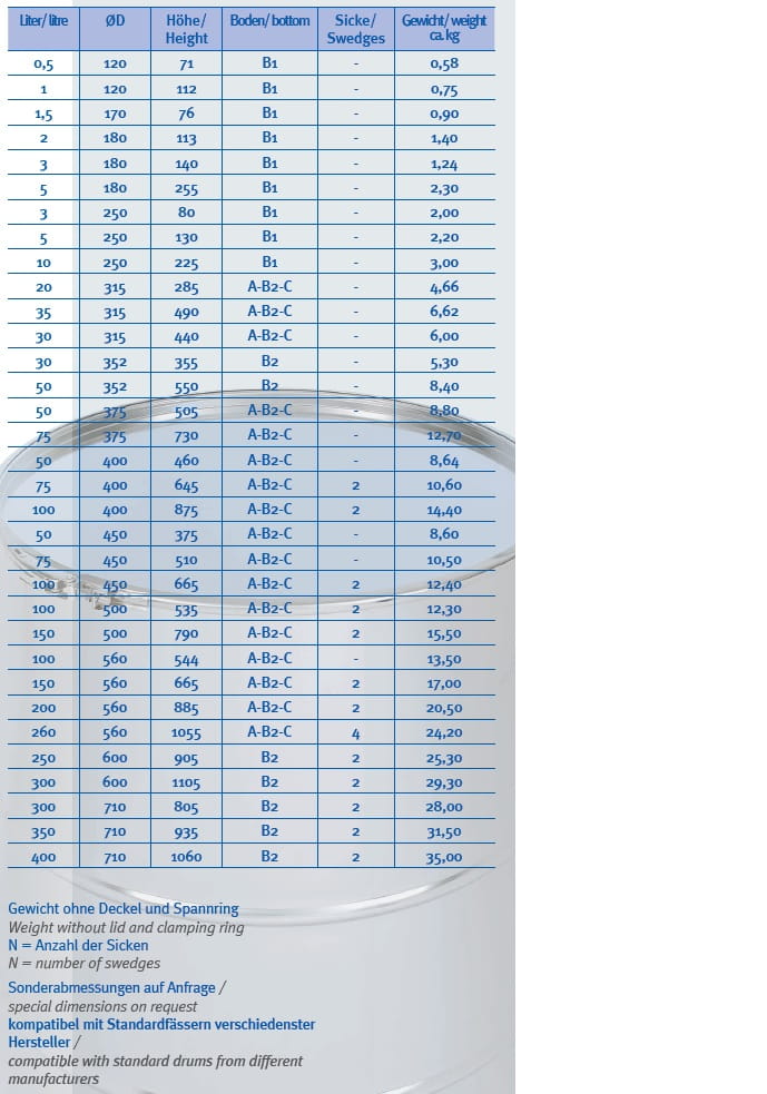 Beczki ze stali nierdzewnej zapewniają wysoką ochronę produktów i użytkowników. Beczki są lekkie, łatwe do czyszczenia oraz w 100% nadające się do recyklingu. Duży asortyment, możliwość dostosowania do potrzeb Klienta.