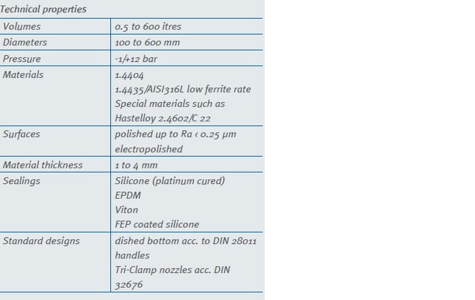 Zbiorniki ciśnieniowe są przeznaczone do przechowywania i transferu proszków i cieczy. Zaprojektowane indywidualnie dla potrzeb Klienta. Gwarancja jakości i maksymalne bezpieczeństwo przy ścisłym przestrzeganiu dyrektywy dotyczącej urządzeń ciśnieniowych i standardu GMP.